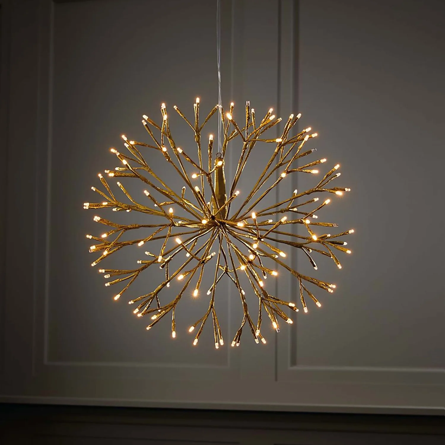 Add stand-out style and a magical glow with this stunning sphere light. The North Pole star offers 360-degree of LED light that will add an atmospheric sparkle to any space. Its champagne-toned branches of light cast a cosy illumination. It will add a gorgeous twinkle to a party or wedding. Hang it outside and it works beautifully as a Christmas decoration too, like a giant bauble of light that the whole neighbourhood can admire.
