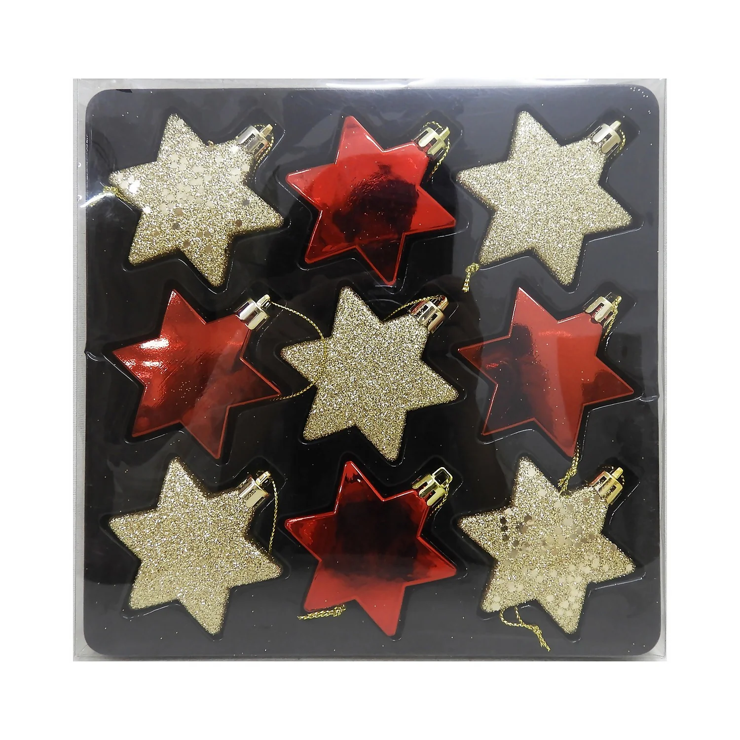 Add stand-out stars to your Christmas tree with this 9-pack of country gathering hanging decorations. In a wintery red and glittery gold, they add a touch of sparkle to your display.
